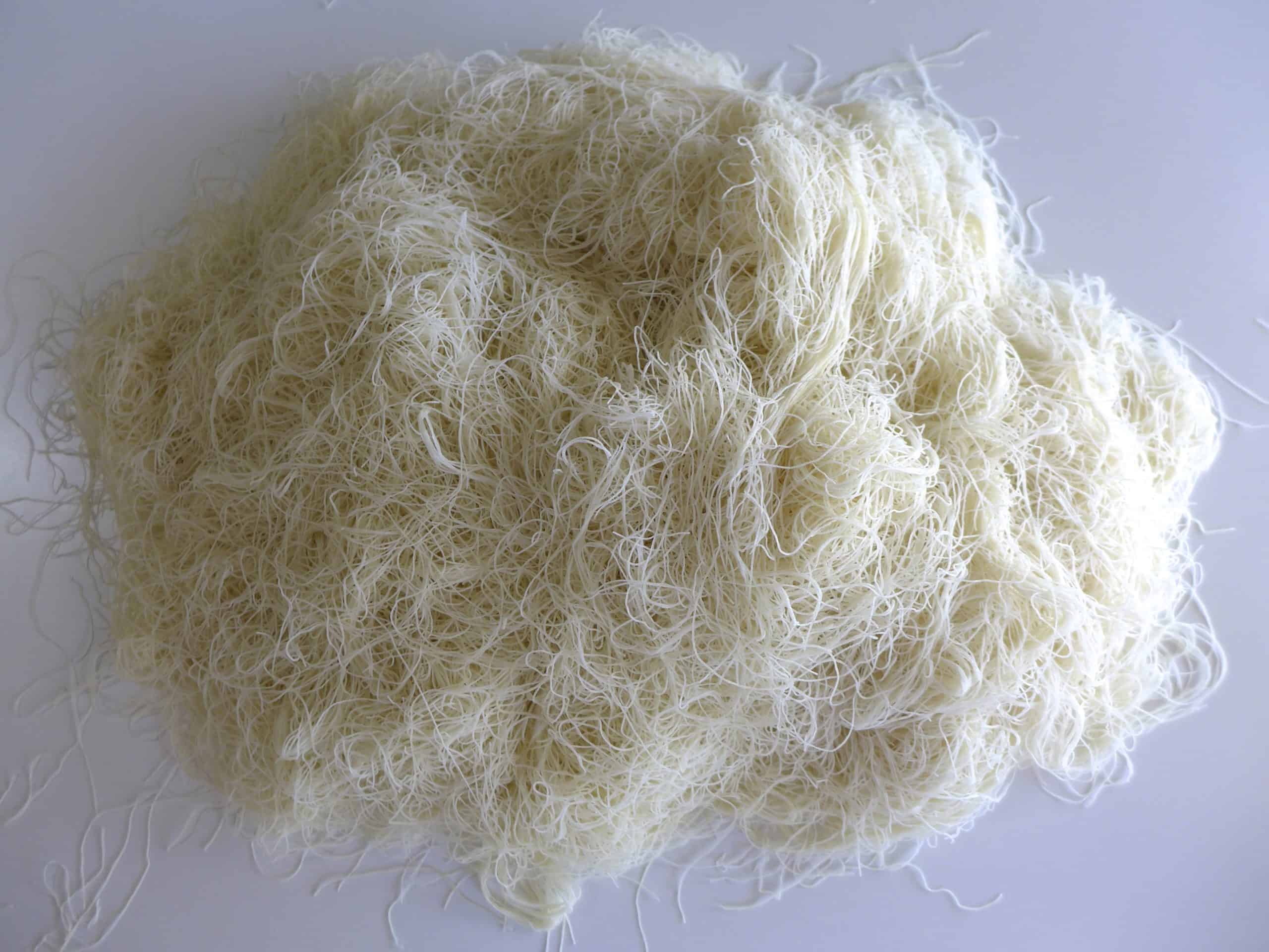 plastic sleeve. Work the kataifi dough with your hands, tearing apart